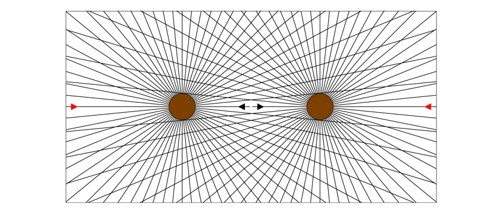 However, the continuous energy transformations in the universe are not unlimited. The total amount of energy is conserved and the total amount of corresponding vectors too. That means that the linear propagation of 1 quantum of energy is equal to the speed of light and the linear propagation of the corresponding vectors is instantaneous. The consequence is that vectors will stabilise local energy densities between large distances long before these energy densities can interfere with each other by exchanging energy. In other words, the non-locality of gravitational vectors facilitate the direction of the propagation of the local energy concentrations – like celestial bodies – in vacuum space.